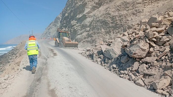 El Ministerio de Transportes y Comunicaciones (MTC), a través de Provías Nacional, atendió la emergencia vial provocada por una falla geológica que produjo derrumbes en el sector Quebrada Honda, en la carretera Panamericana Sur, en la región Arequipa.