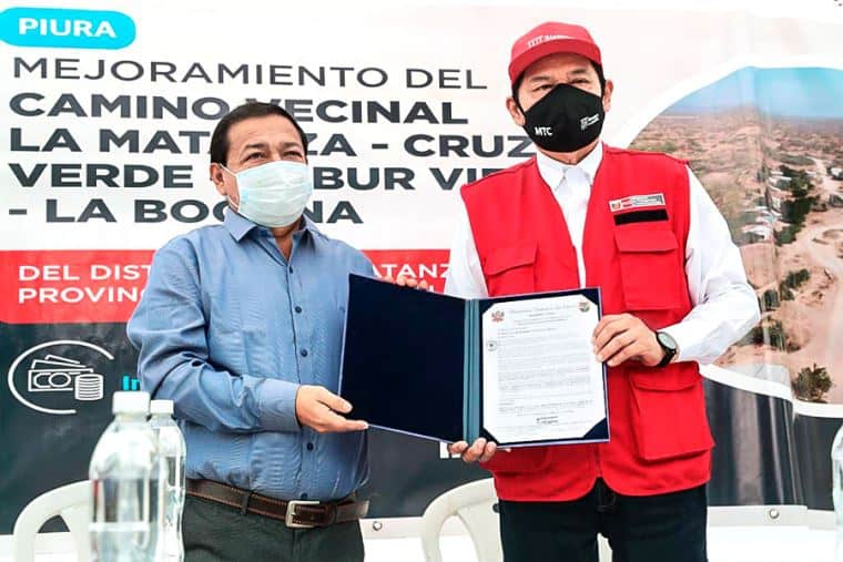 Se colocó la primera piedra de la obra de mejoramiento del camino vecinal tramo La Matanza-Cruz Verde-Pabur Viejo-La Bocana en la provincia de Morropón (Piura). El titular del Ministerio de Transportes y Comunicaciones (MTC), Juan Barranzuela, encabezó la ceremonia de inicio de esta obra que implica una inversión de S/8 102 180.