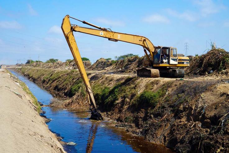 El Ministerio de Vivienda, Construcción y Saneamiento (MVCS) realiza trabajos de limpieza y descolmatación del dren D-317, en el distrito José Leonardo Ortiz, Chiclayo (Lambayeque). Las labores se realizan mediante el Programa Nuestras Ciudades (PNC) en los sectores Fundo El Abuelo y Culpón.
